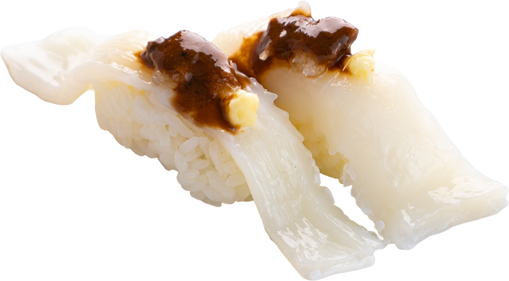 柔らかいムラサキイカの上に肝のジュレが乗っています。