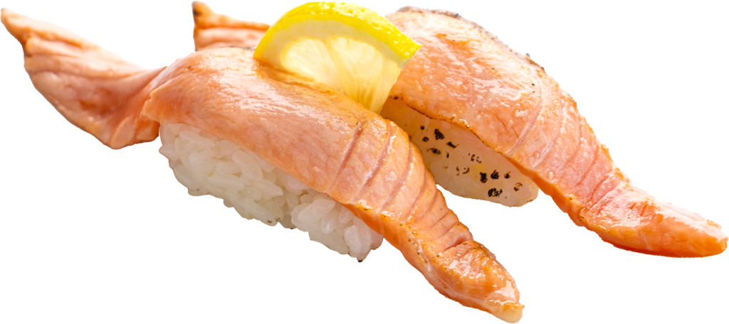 青森育ちの国産サーモンを炙ると、旨みがギュッと凝縮!