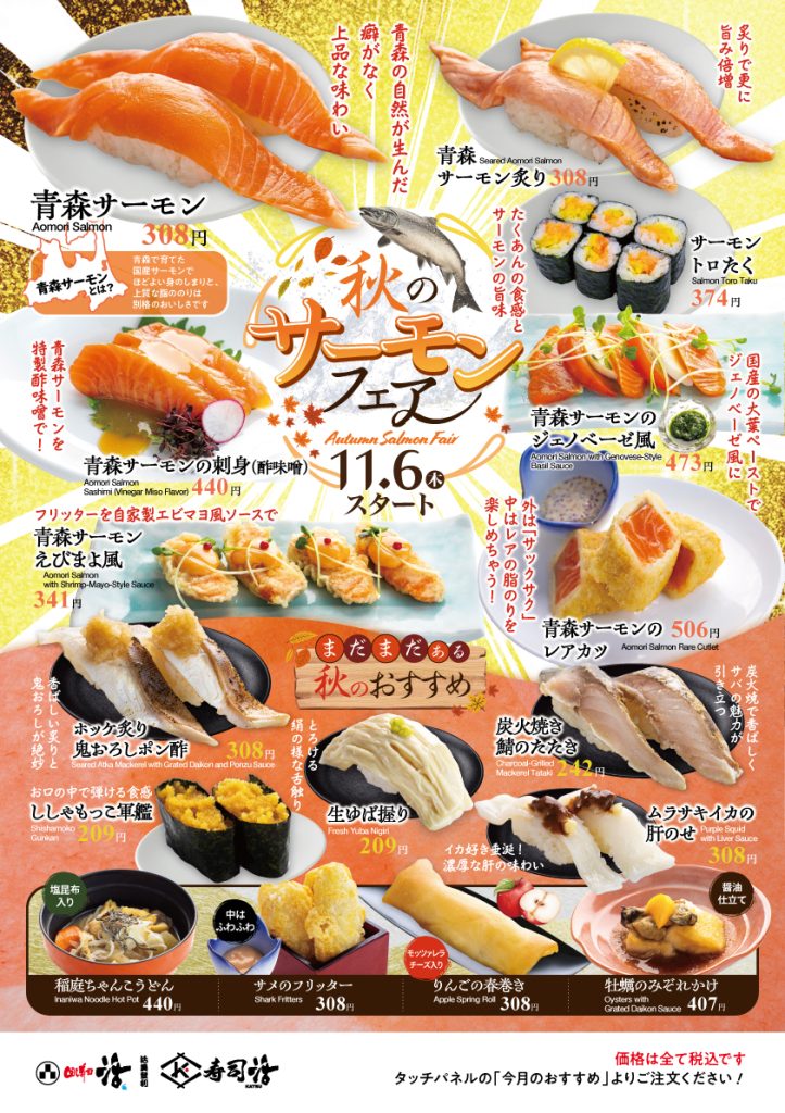 さらに、今だけの旬ネタや一品料理も勢ぞろい。食欲の秋にぴったりのラインナップです。