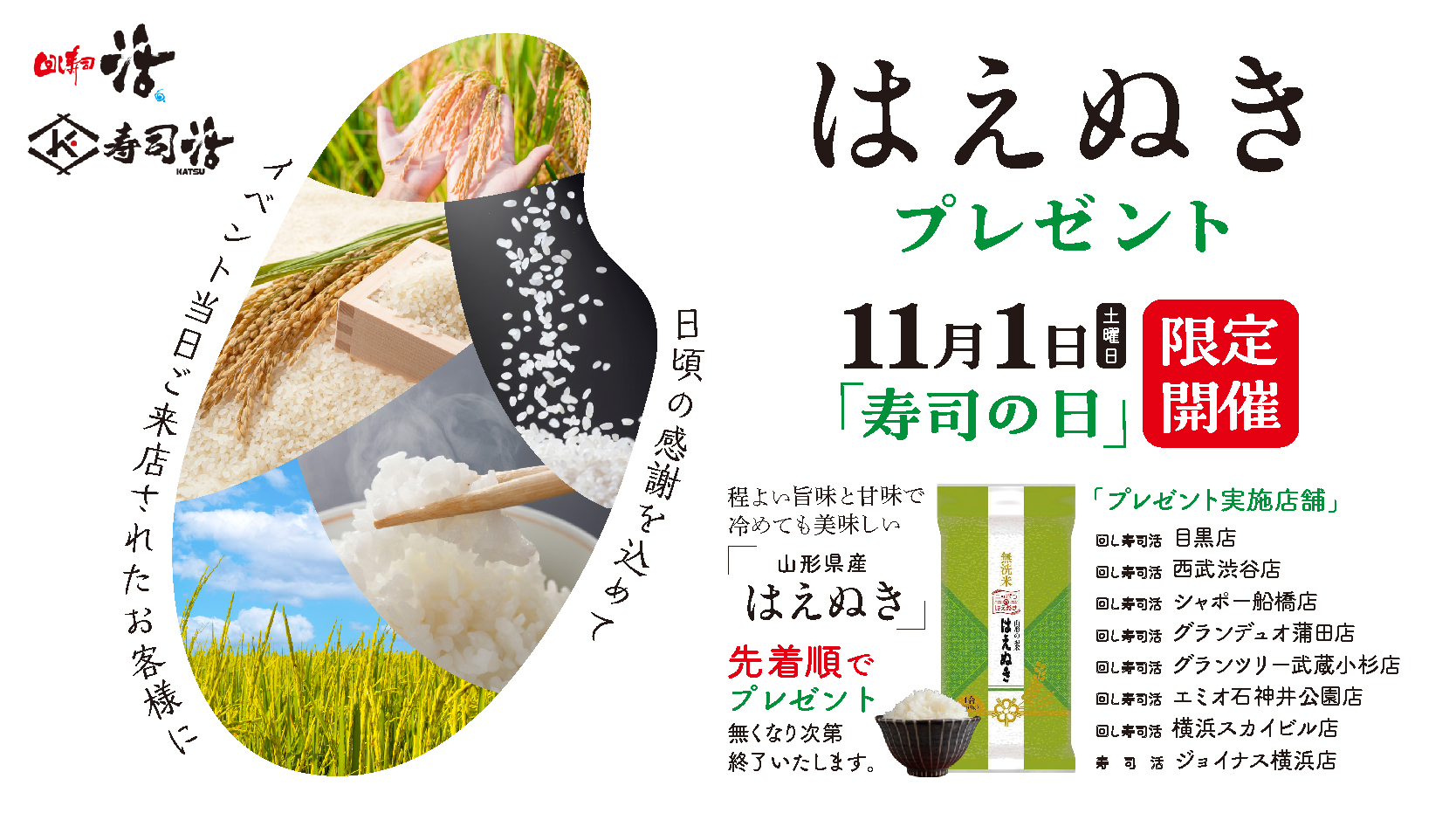 この“旬”の季節に合わせて、11月1日は「全国すしの日」とされています。