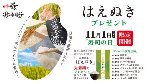 この“旬”の季節に合わせて、11月1日は「全国すしの日」とされています。
